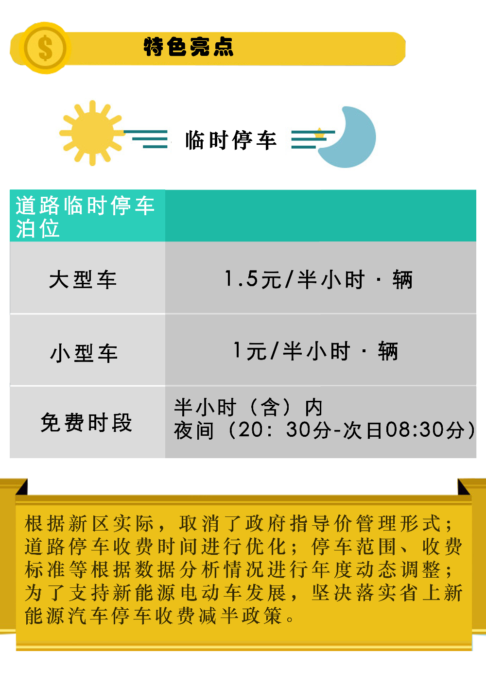 六是亮點(diǎn)特色。根據(jù)新區(qū)實(shí)際,取消了政府指導(dǎo)價(jià)管理形式;道路停車(chē)收費(fèi)時(shí)間進(jìn)行優(yōu)化(早8:30至晚20:30);停車(chē)范圍、收費(fèi)標(biāo)準(zhǔn)等根據(jù)數(shù)據(jù)分析情況進(jìn)行年度動(dòng)態(tài)調(diào)整;管理和監(jiān)督權(quán)限下放園區(qū),權(quán)責(zé)一致;為了支持新能源電動(dòng)車(chē)發(fā)展,堅(jiān)決落實(shí)省上新能源汽車(chē)停車(chē)收費(fèi)減半政策。
