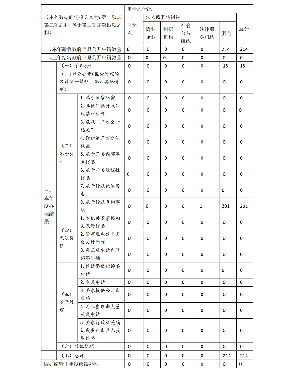 ?。ǘ┮郎暾埞_信息情況。2020年,公安局收到政府信息公開申請正式受理214件,辦結(jié)214件。