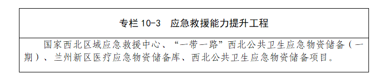 全面提高應(yīng)急管理能力。加快建設(shè)服務(wù)西北地區(qū)的國家救災(zāi)應(yīng)急物資儲備中心、國家西北戰(zhàn)略物資儲備基地,強(qiáng)化公共衛(wèi)生、糧食、防洪救災(zāi)等物資儲備。建設(shè)國家緊急醫(yī)學(xué)救援基地、區(qū)域緊急醫(yī)學(xué)救援中心、帳篷化現(xiàn)場衛(wèi)生應(yīng)急處置中心、國家西北區(qū)域救援中心和西北地區(qū)綜合減災(zāi)與風(fēng)險(xiǎn)管理平臺,完善應(yīng)急救援基礎(chǔ)設(shè)施。推動跨區(qū)域“互聯(lián)網(wǎng)+應(yīng)急通信”指揮調(diào)度和服務(wù)管理云平臺建設(shè),建設(shè)國家數(shù)據(jù)災(zāi)備服務(wù)信息處理中心,提升應(yīng)急管理預(yù)警、決策、調(diào)度和保障數(shù)據(jù)安全能力。完善重大突發(fā)事件應(yīng)急指揮和聯(lián)動處置機(jī)制,強(qiáng)化綜合處突隊(duì)伍建設(shè),提高應(yīng)急處置和防災(zāi)、減災(zāi)、抗災(zāi)、救災(zāi)能力。