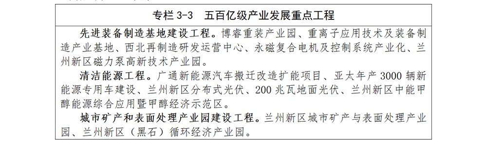 ——現(xiàn)代產(chǎn)業(yè)體系加速構(gòu)建。把構(gòu)建現(xiàn)代產(chǎn)業(yè)體系作為推動高質(zhì)量發(fā)展關(guān)鍵支撐,緊抓中東部產(chǎn)業(yè)轉(zhuǎn)移機(jī)遇,堅(jiān)持“強(qiáng)龍頭、補(bǔ)鏈條、聚集群”,引進(jìn)產(chǎn)業(yè)項(xiàng)目487個、總投資2115億元,形成了綠色化工、新材料、大數(shù)據(jù)、先進(jìn)裝備制造、新能源、生物醫(yī)藥、文化旅游、商貿(mào)物流、現(xiàn)代農(nóng)業(yè)、節(jié)能環(huán)保十大產(chǎn)業(yè)全鏈循環(huán)發(fā)展的態(tài)勢。150平方公里千億級綠色高端化工產(chǎn)業(yè)園高標(biāo)準(zhǔn)規(guī)劃建設(shè),已快速成長為國內(nèi)一流精細(xì)化工產(chǎn)品集聚地。4.5微米世界最薄銅箔試生產(chǎn)成功、大禹防水材料獲“大世界基尼斯之最”,有色金屬、綠色建材、光電材料等新材料產(chǎn)業(yè)體系形成。引進(jìn)中科院大科學(xué)裝置等先進(jìn)裝備制造產(chǎn)業(yè)項(xiàng)目140多個,形成了石化重型裝備制造、新能源裝備生產(chǎn)、大科學(xué)裝置等設(shè)備制造產(chǎn)業(yè)體系,獲批國家裝備制造高新技術(shù)產(chǎn)業(yè)化基地。蘭州新區(qū)入選“國家新型工業(yè)化產(chǎn)業(yè)示范基地(大數(shù)據(jù))”,大數(shù)據(jù)產(chǎn)業(yè)加速集聚。中成藥、化學(xué)藥、動物疫苗、醫(yī)療器械、醫(yī)藥物流等生物醫(yī)藥產(chǎn)業(yè)集群發(fā)展,佛慈榮獲“中國中成藥行業(yè)企業(yè)出口十強(qiáng)”。堅(jiān)持以設(shè)施化、機(jī)械化、智能化提升現(xiàn)代農(nóng)業(yè)生產(chǎn)水平,現(xiàn)代農(nóng)業(yè)示范園入選粵港澳大灣區(qū)“菜籃子”生產(chǎn)基地,建成18萬平方米亞洲單體最大高端花卉基地、全省最大中藥材育苗基地,300萬頭生豬、百萬只羊、萬頭奶牛生態(tài)種養(yǎng)循環(huán)產(chǎn)業(yè)鏈基本形成。產(chǎn)業(yè)投資成為拉動發(fā)展主引擎,全省實(shí)體經(jīng)濟(jì)主戰(zhàn)場地位日益凸顯。