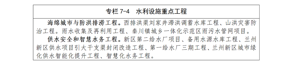 完善防洪排澇減災(zāi)體系。實(shí)施蘭州新區(qū)水阜河蓄洪等東西行洪通道生態(tài)治理工程,推動劉家井、西小川蓄滯洪水庫及排洪通道為主的防洪系統(tǒng)建設(shè),打造以甘露池、高家莊、西岔蓄滯洪水庫及排洪通道為主的防洪系統(tǒng),增強(qiáng)流域?qū)樗恼{(diào)蓄能力。加快海綿城市建設(shè),推進(jìn)城區(qū)主干道、廣場、機(jī)關(guān)單位、小區(qū)學(xué)校的海綿化提質(zhì)改造,增強(qiáng)雨水就地消納和再利用能力。