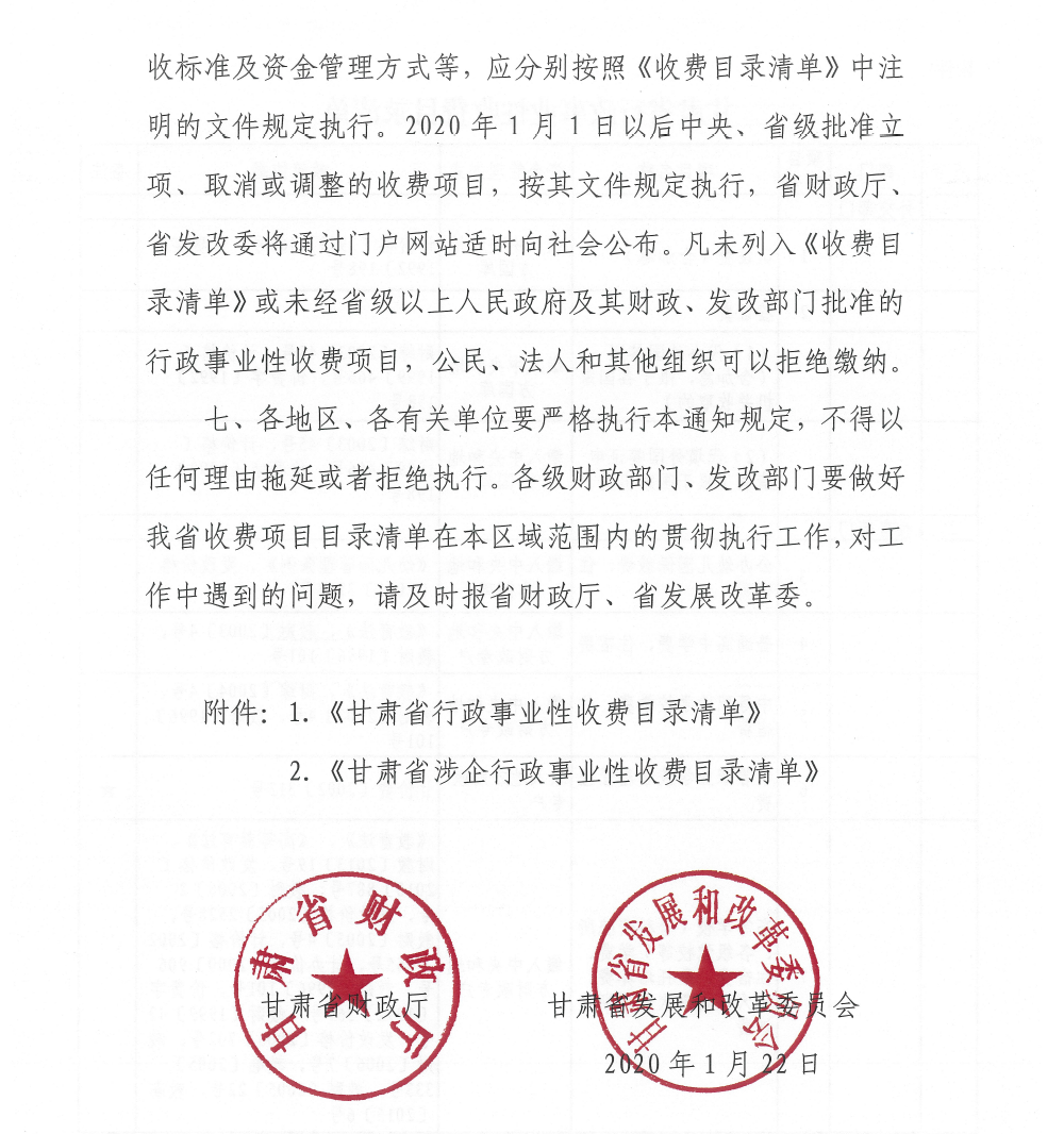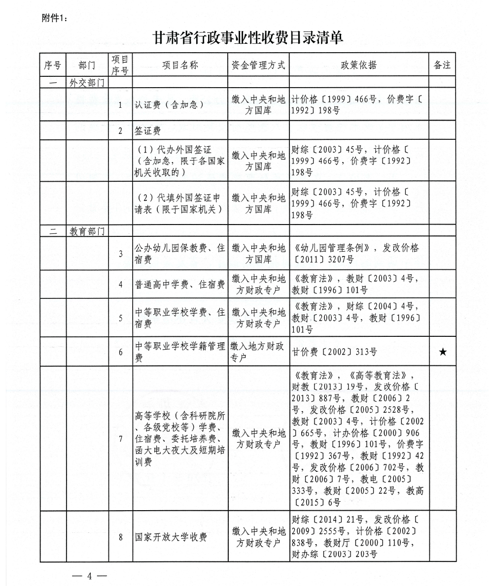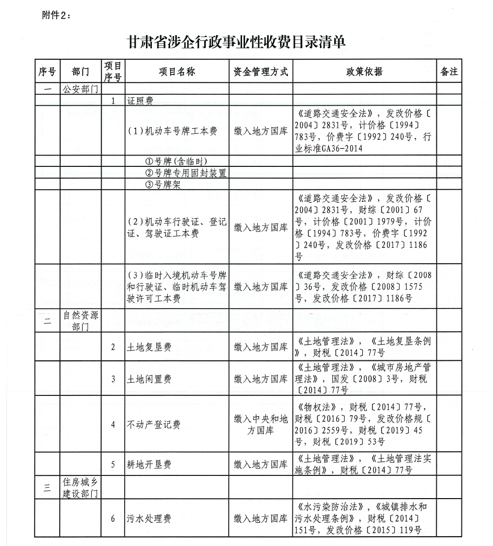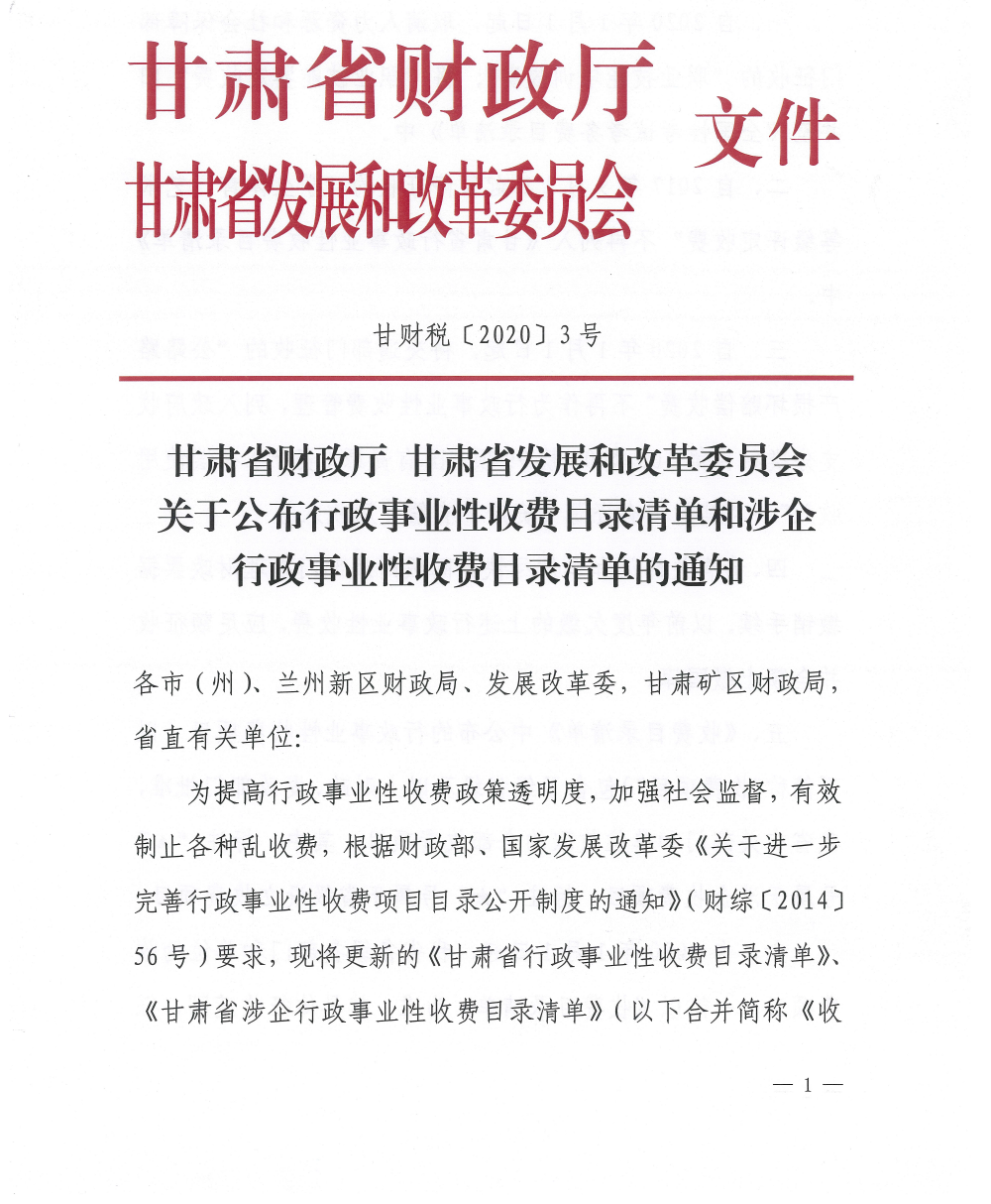 甘肅省財(cái)政廳 甘肅省發(fā)展和改革委員會(huì)關(guān)于公布行政事業(yè)性