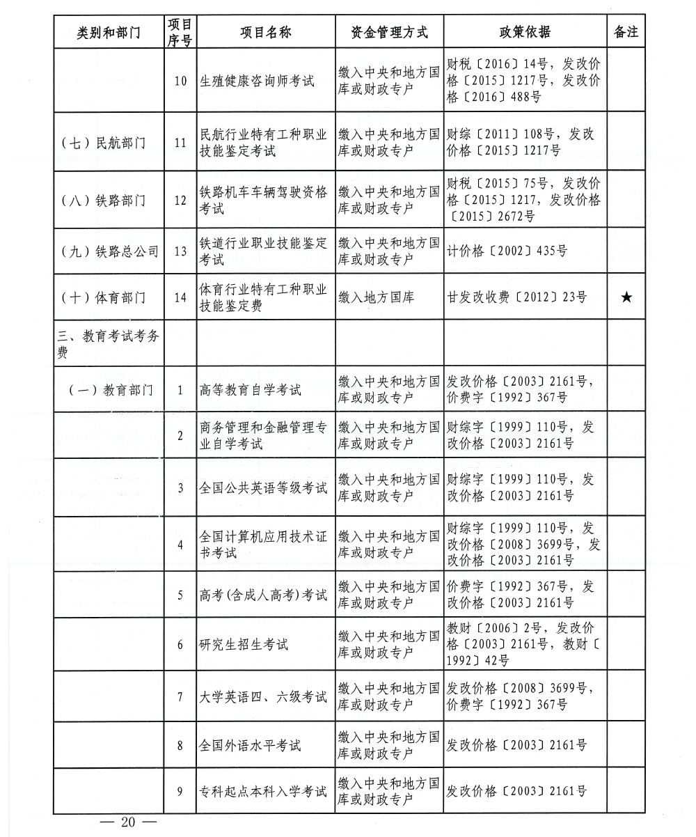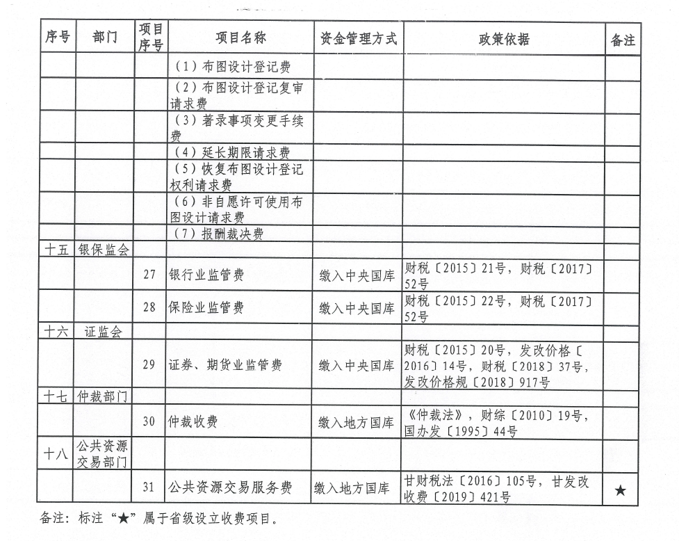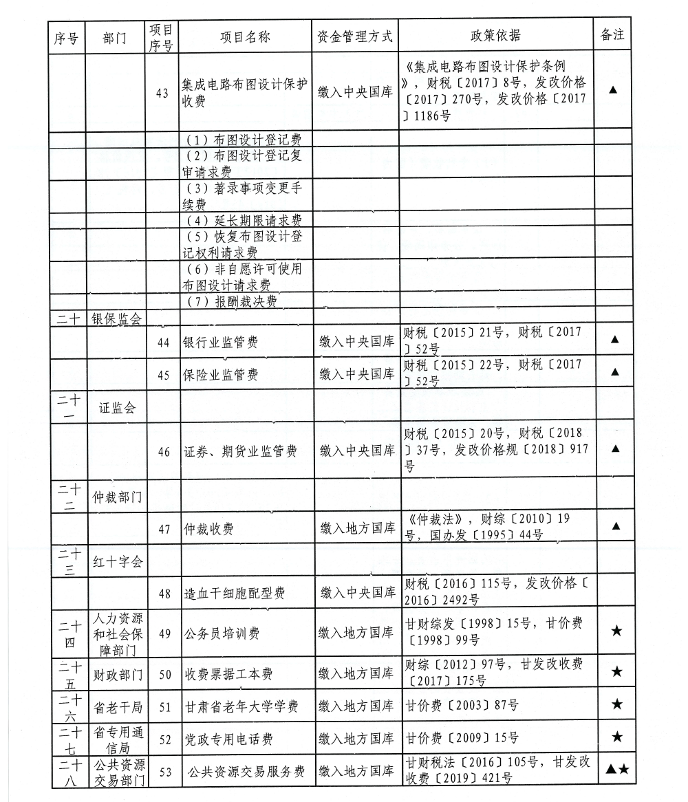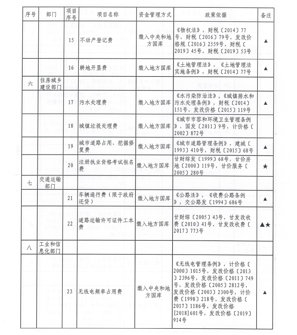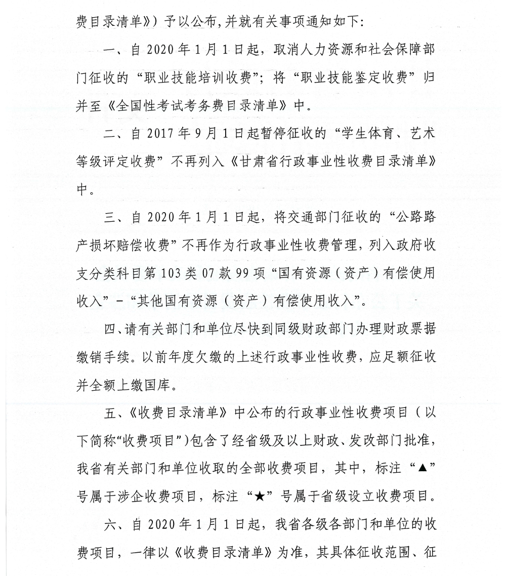 甘肅省財(cái)政廳 甘肅省發(fā)展和改革委員會(huì)關(guān)于公布行政事業(yè)性