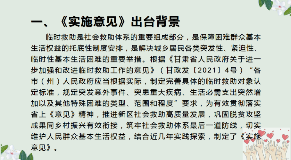 相關(guān)政策:蘭州新區(qū)管理委員會關(guān)于印發(fā)《關(guān)于進一步加強和改進臨時救助工作的實施意見》的通知
