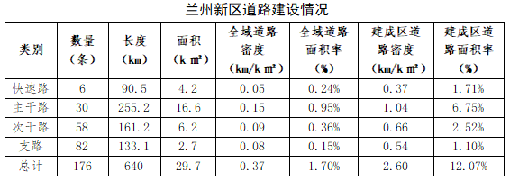 至2020年底,新區(qū)快速路、主干路、次干路、支路等各等級(jí)道路總里程達(dá)640km,已基本形成“十四橫八縱一聯(lián)”的方格網(wǎng)布局。“十三五”期間,蘭州新區(qū)通車道路達(dá)176條,通車?yán)锍?40km??焖俾吠ㄜ?條,共90.5km,包括經(jīng)十五路、北快速路等,主干路通車30條,共255.2km,包括經(jīng)一路、經(jīng)七路等,次干路通車58條,共161.2km,包含緯二路、經(jīng)二路等;支路通車82條,共133.1km。