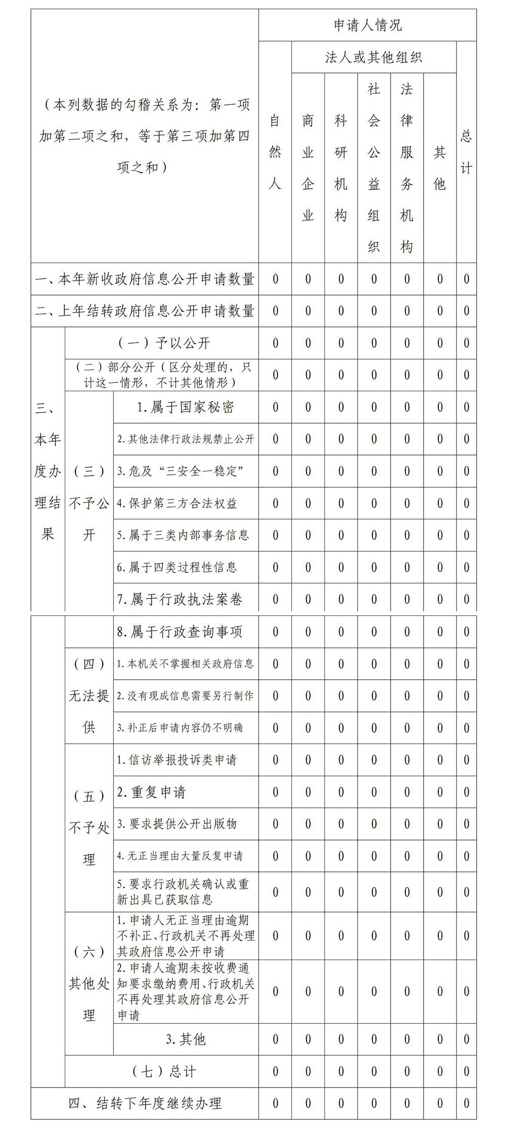 三、收到和處理政府信息公開申請情況