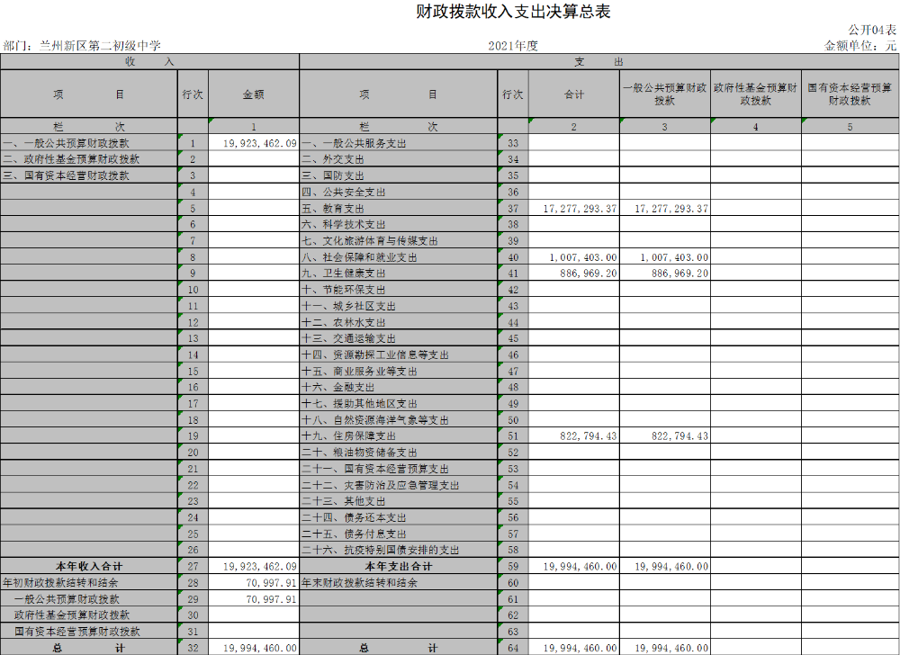 2021年度蘭州新區(qū)第二初級中學(xué)部門決算