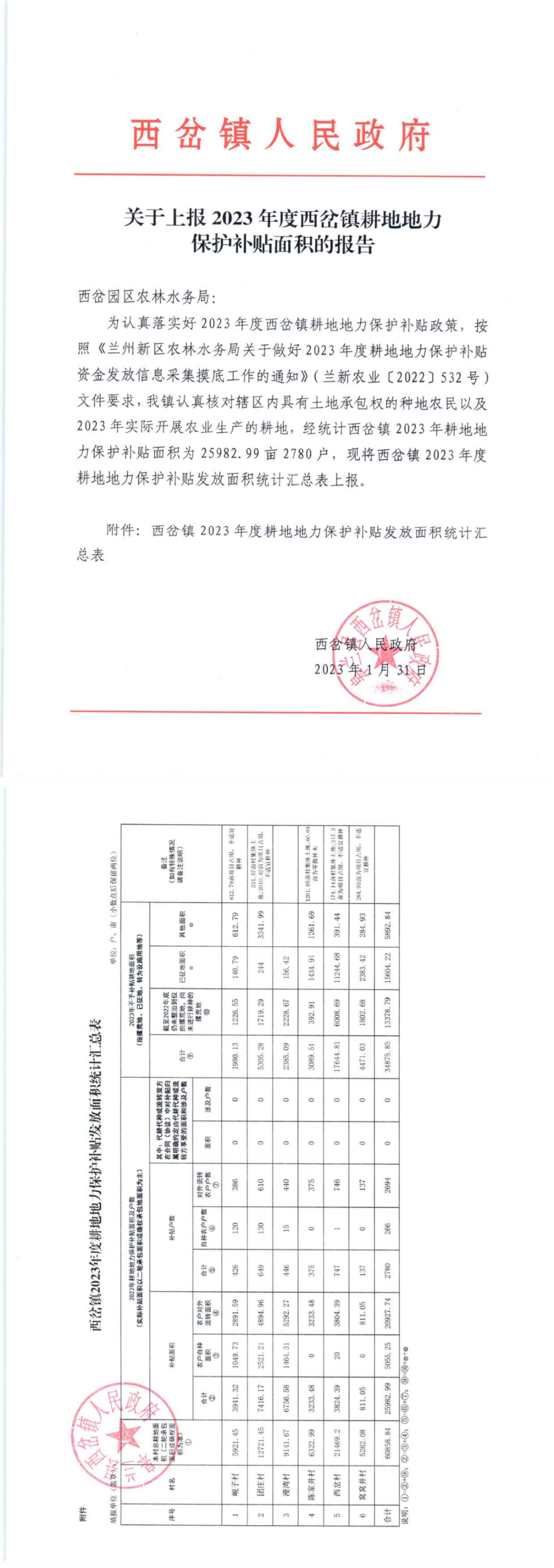附件:蘭州新區(qū)西岔園區(qū)農(nóng)林水務局關于2023年度西岔園區(qū)耕地地力保護補貼面積的報告.pdf