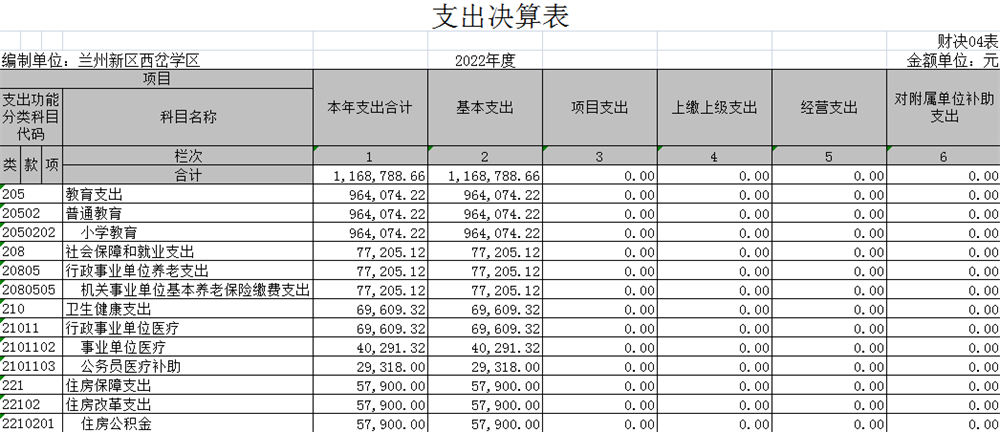 附件1:蘭州新區(qū)西岔學(xué)區(qū)2022年度部門(mén)決算公開(kāi)表
