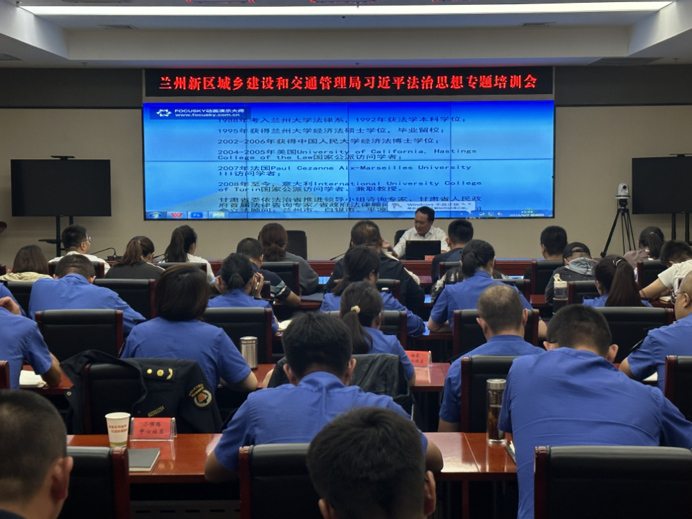 為深入學(xué)習(xí)貫徹習(xí)近平法治思想,持續(xù)推進(jìn)蘭州新區(qū)城建交通系統(tǒng)法治政府建設(shè),強(qiáng)化行政執(zhí)法人員的法治意識(shí),9月8日,城建交通局組織開展了蘭州新區(qū)城建交通系統(tǒng)學(xué)習(xí)習(xí)近平法治思想專題培訓(xùn)會(huì),蘭州大學(xué)法學(xué)院副院長劉光華教授應(yīng)邀作了專題授課。本次培訓(xùn)以學(xué)習(xí)貫徹習(xí)近平法治思想、強(qiáng)化行政執(zhí)法能力建設(shè)為主題,融學(xué)術(shù)性、實(shí)用性、指導(dǎo)性為一體,對于完整、準(zhǔn)確、全面理解和把握習(xí)近平法治思想的核心要義,進(jìn)一步推動(dòng)今后蘭州新區(qū)建設(shè)交通領(lǐng)域依法行政具有指導(dǎo)意義。新區(qū)城建交通局和各園區(qū)建設(shè)局、各鄉(xiāng)鎮(zhèn)街道、社區(qū)中心城市管理執(zhí)法人員等共60余人參加了培訓(xùn)。