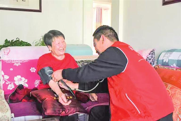 彩虹城社區(qū)衛(wèi)生服務(wù)中心家庭醫(yī)生上門為轄區(qū)老年患者診療。