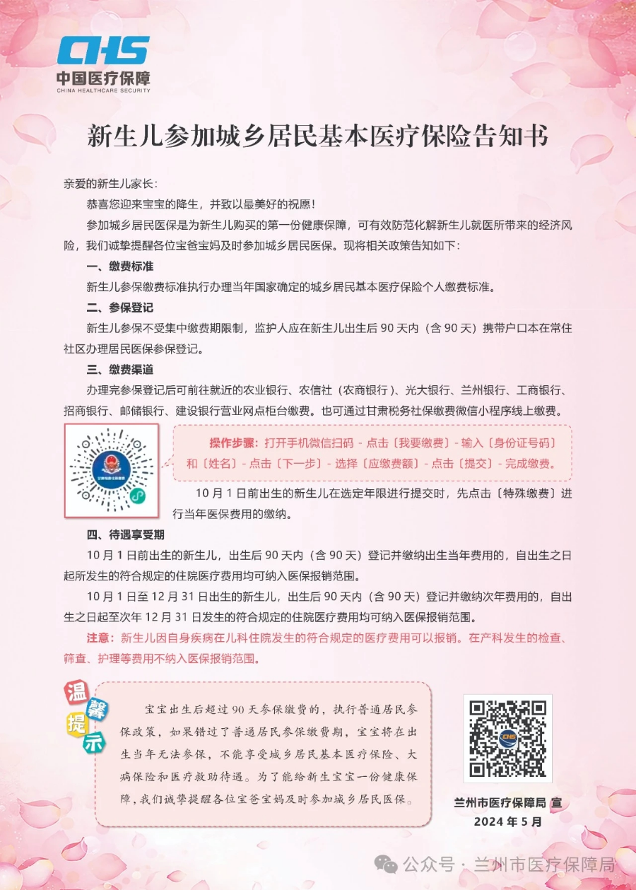 新生兒參加城鄉(xiāng)居民基本醫(yī)療保險告知書