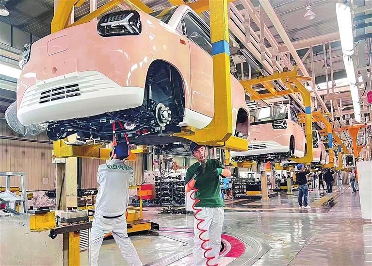 圖為“知豆彩虹”新招聘的員工在組裝車間工作。
