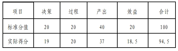 “2023年農(nóng)村環(huán)境綜合整治項目”部門績效評價,結(jié)合上川鎮(zhèn)2023年農(nóng)村環(huán)境綜合整治項目工作特點,主要從“決策”、“過程”、“產(chǎn)出“、“效益”四個維度對績效目標進行逐項分解,從定性與定量兩個角度綜合考量、評價,對項目績效做出全面、客觀、公正的評價。項目績效評價綜合得分為94.5分,評價結(jié)果等級為優(yōu)。其中決策得29分、過程得10分、產(chǎn)出得37分、效益得18.5分。一級指標得分情況如下表: