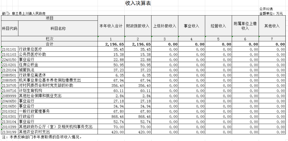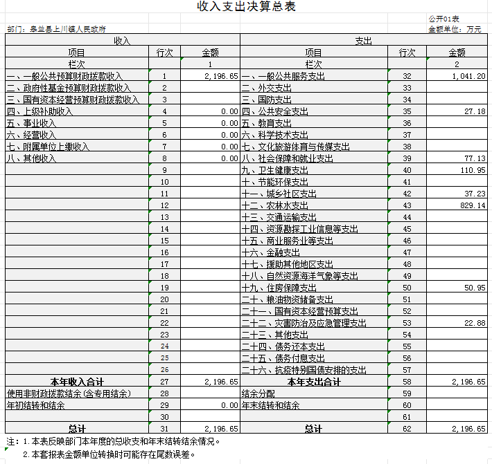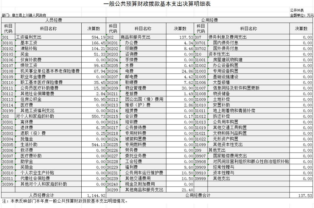 由于決算公開表格中金額數(shù)值應(yīng)當保留兩位小數(shù),公開數(shù)據(jù)為四舍五入計算結(jié)果,個別數(shù)據(jù)合計項與分項之和存在小數(shù)點后差額,特此說明。