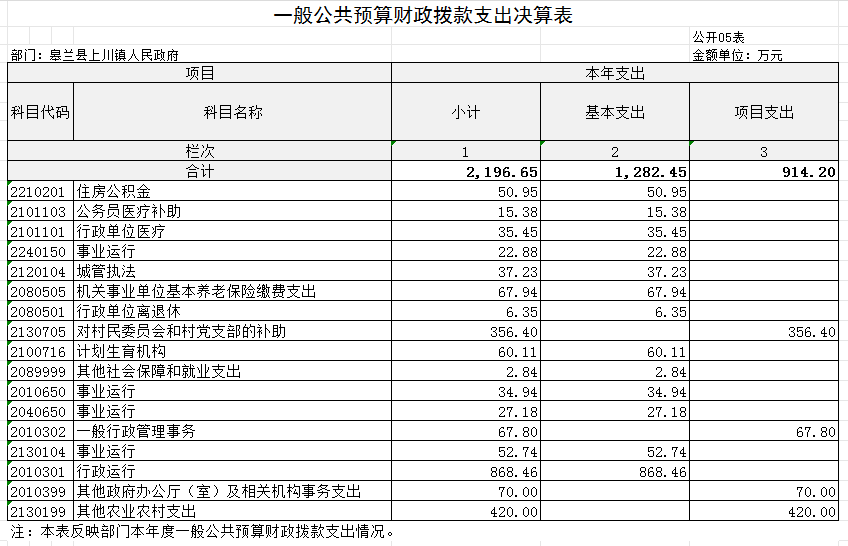 2023年度皋蘭縣上川鎮(zhèn)人民政府部門決算