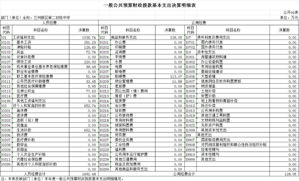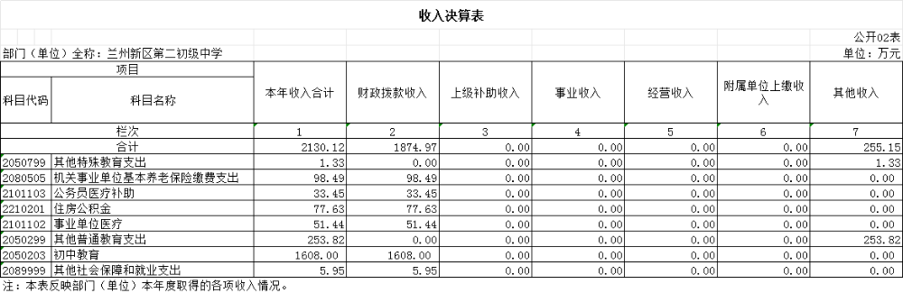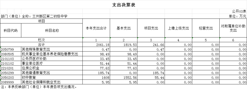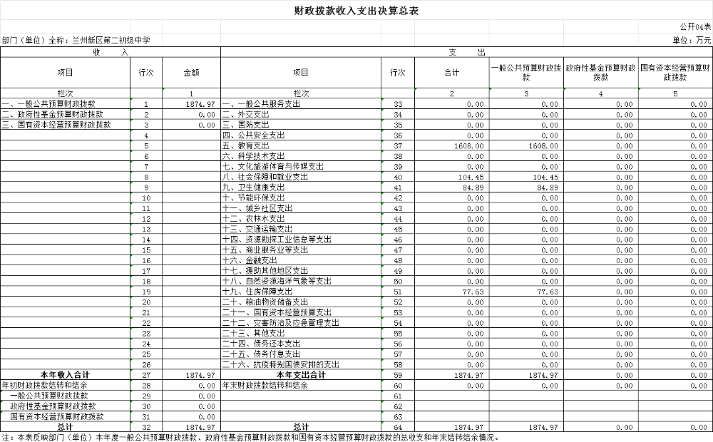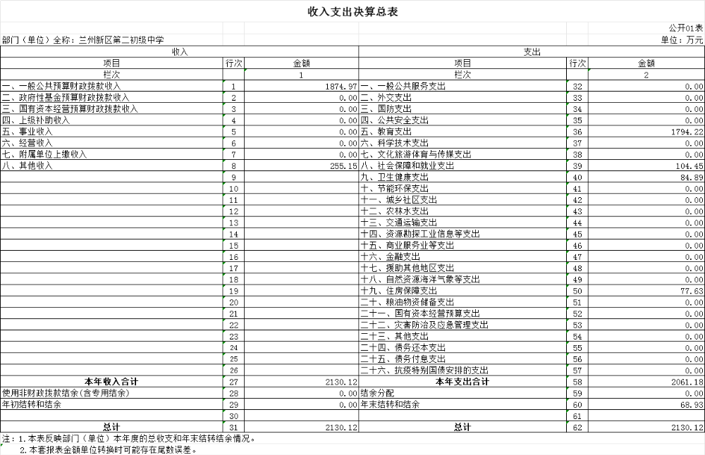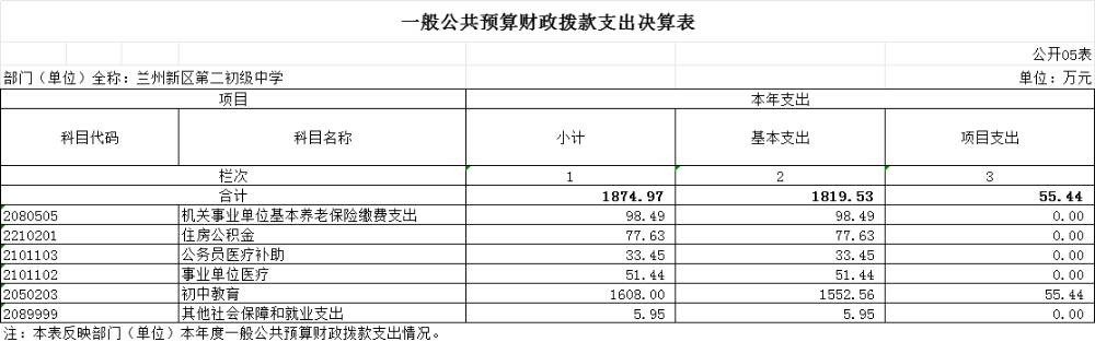 1:蘭州新區(qū)第二初級中學(xué)2023年度部門決算公開表