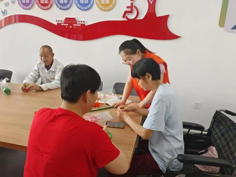“我腿不好,出行全靠輪椅,因為殘疾,也不愿意與別人交流。”鄧女士說。今年8月,她在社區(qū)工作人員動員及家人的陪伴下,抱著試試看的心態(tài)來到殘疾人日間照料中心進行生活體驗,“起初我是不愿意來的,待了幾天發(fā)現(xiàn)這里很好,不僅有免費午餐,也有一些適合我們?nèi)粘?祻?fù)鍛煉的器具,中心的工作人員也是給我們一些專業(yè)的療護,我也可以教其他殘疾人朋友做手工,每天感到很開心!”在輔助性就業(yè)工坊,鄧女士一邊說,一邊做著自己喜歡的手工藝品。其他的殘疾人有的聚在一起看書聊天,有的跟著鄧女士學習手工活,有的在醫(yī)護人員指導下進行康復(fù)訓練,屋里不時傳來陣陣歡笑。