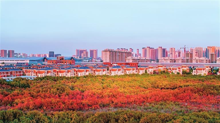 深秋的蘭州新區(qū),層林盡染,金黃與火紅交織成絢爛的畫(huà)卷。百花公園的林間小道上,片片落葉鋪就一條條金色大道,踏上去沙沙作響,仿佛是大自然最悠揚(yáng)的樂(lè)章。黃葉如金,璀璨地閃耀在枝頭,與藍(lán)天白云相映成趣,美得令人心醉。棲霞湖波光粼粼,倒映著斑斕秋色,偶爾有落葉輕舞水面,與悠閑嬉戲的鴨子翩翩共舞,激起層層漣漪。傍晚時(shí)分,夕陽(yáng)將天邊染成橘紅,秦王川國(guó)家濕地公園像是涂上了一層金黃色,顯得格外瑰麗。田野里,一個(gè)個(gè)紅艷艷的朝天椒綴滿枝頭,仿佛一片火紅的海洋。在新區(qū),每一種風(fēng)景都是秋天最美的印記。