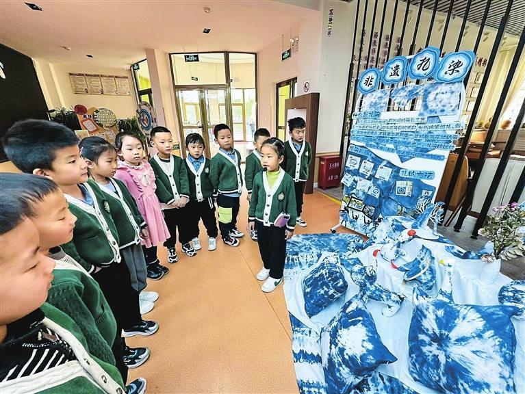 孩子們在“蘭州新區(qū)第二幼兒園非遺體驗(yàn)館”參觀。
