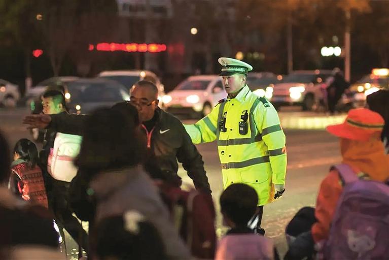 “熒光綠+志愿紅” 共護(hù)交通文明線