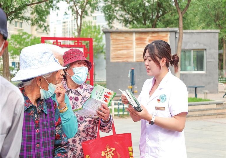醫(yī)務(wù)人員發(fā)放宣傳資料。