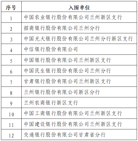 蘭州新區(qū)商品房預(yù)售資金監(jiān)管銀行項目中標結(jié)果公示