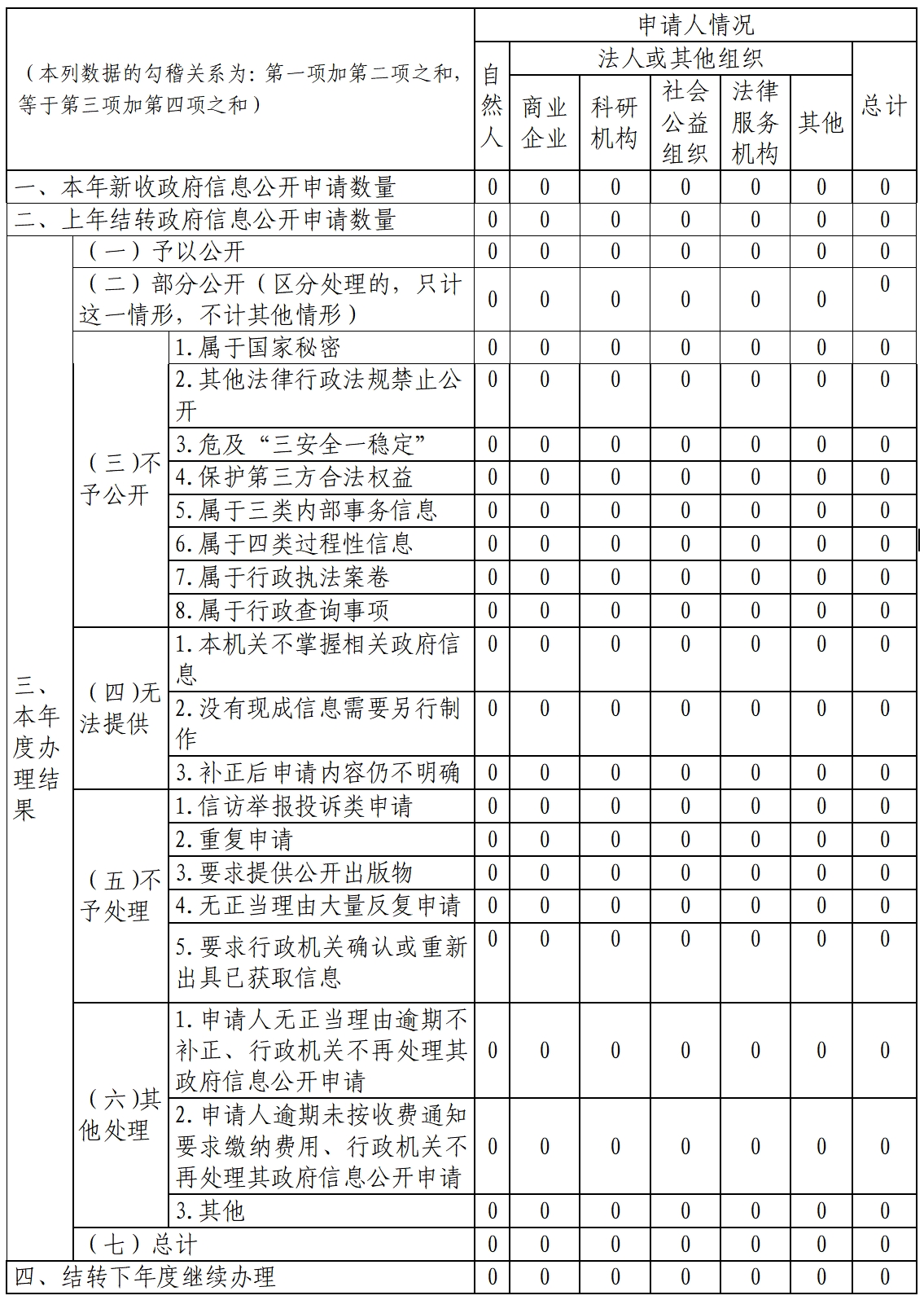 三、收到和處理政府信息公開申請情況