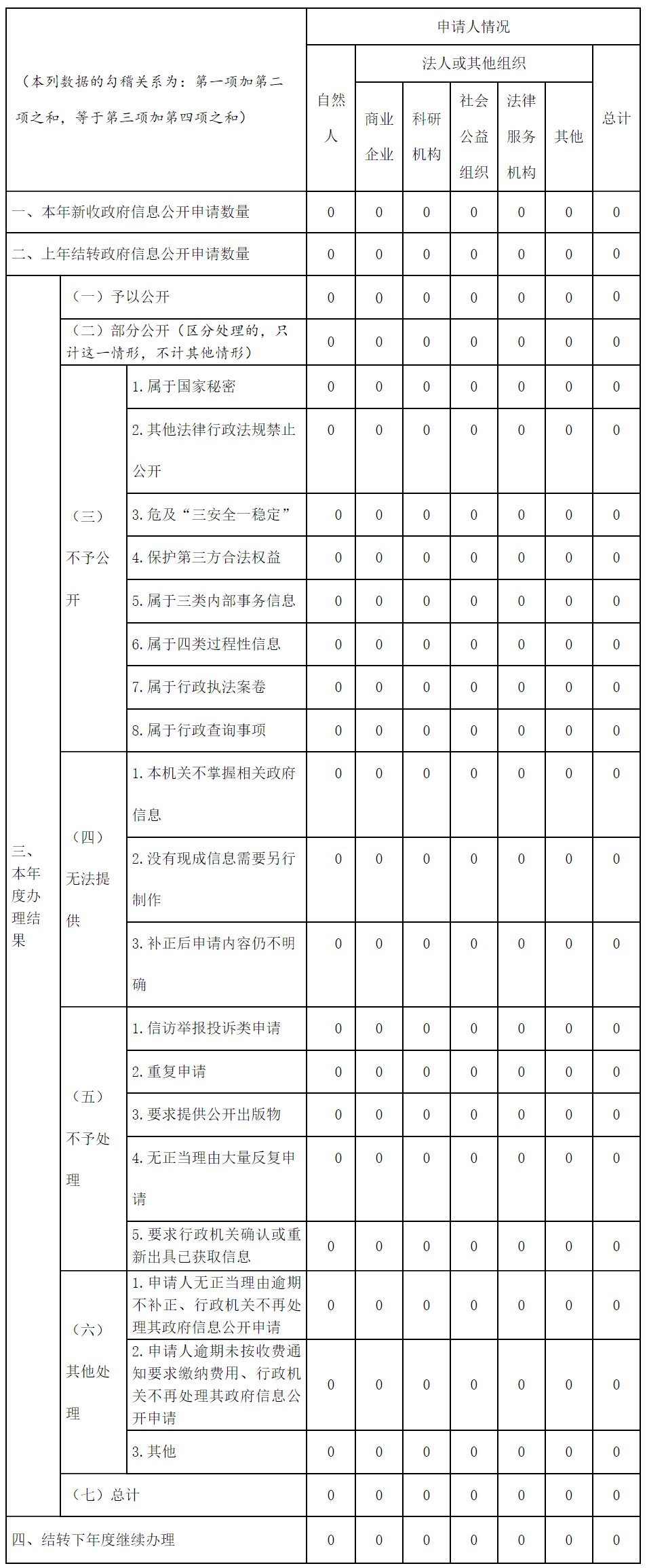 ?。ǘ┮郎暾?qǐng)公開情況。全年未收到依申請(qǐng)公開事項(xiàng)。