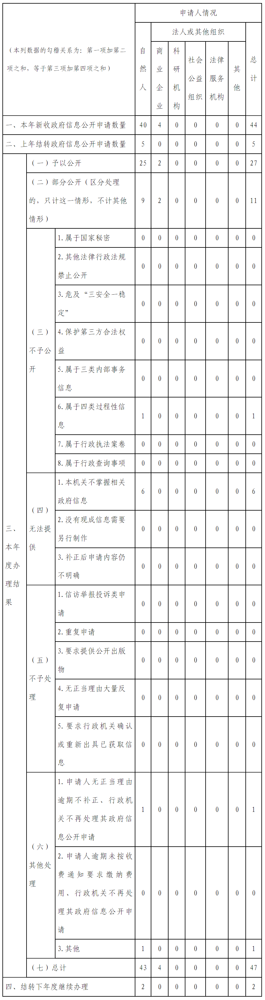 根據(jù)《中華人民共和國政府信息公開條例》《甘肅省政務(wù)公開工作實(shí)施方案》和《蘭州新區(qū)2024年政務(wù)公開工作要點(diǎn)》要求,我局編制了2024年度政府信息公開年度報(bào)告,本報(bào)告包括總體情況、主動公開政府信息情況、收到和處理政府信息公開申請情況、政府信息公開行政復(fù)議和行政訴訟情況、存在的主要問題及改進(jìn)情況、其他需要報(bào)告的事項(xiàng)等六個部分,所列數(shù)據(jù)統(tǒng)計(jì)期限自2024年1月1日起至2024年12月31日止。