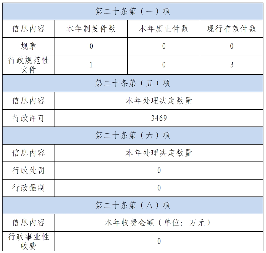 根據(jù)《中華人民共和國(guó)政府信息公開(kāi)條例》(以下簡(jiǎn)稱(chēng)《條例》),對(duì)照《蘭州新區(qū)管委會(huì)辦公室關(guān)于做好2024年政府信息公開(kāi)工作年度報(bào)告編制和發(fā)布工作的通知》要求,我局編制了《蘭州新區(qū)農(nóng)林水務(wù)局2024年政府信息公開(kāi)工作年度報(bào)告》。年度報(bào)告由總體情況,主動(dòng)公開(kāi)政府信息情況,收到和處理政府信息公開(kāi)申請(qǐng)情況,政府信息公開(kāi)行政復(fù)議、行政訴訟情況,存在的主要問(wèn)題及改進(jìn)情況,其他需要報(bào)告的事項(xiàng)六大塊組成。本報(bào)告中所列數(shù)據(jù)的統(tǒng)計(jì)期限自2024年1月1日起至2024年12月31日止。