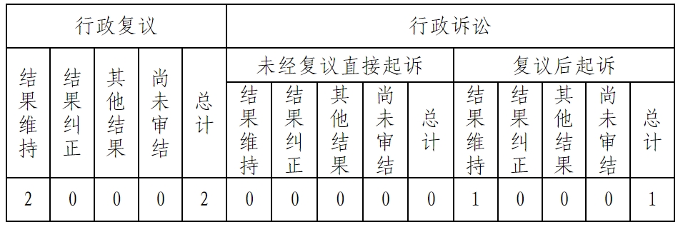 截至2024年12月31日,我局申請(qǐng)行政復(fù)議事項(xiàng)2項(xiàng)、提起行政訴訟事項(xiàng)1項(xiàng)。