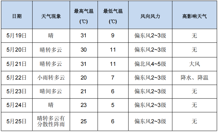 一、未來一周(5月19日—5月25日)天氣趨勢預(yù)報(bào)