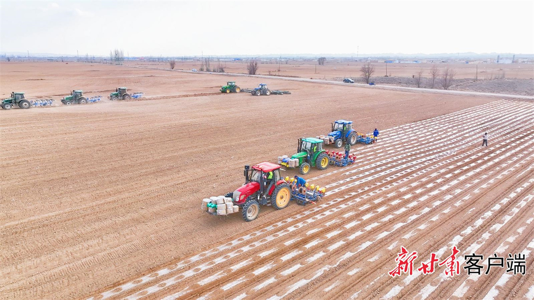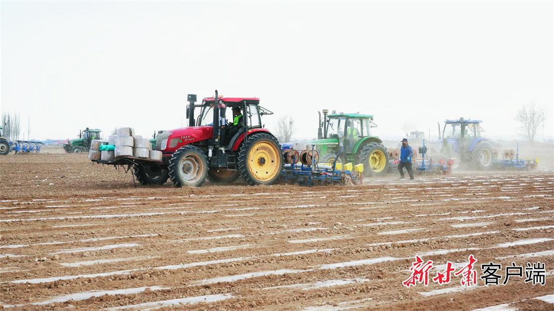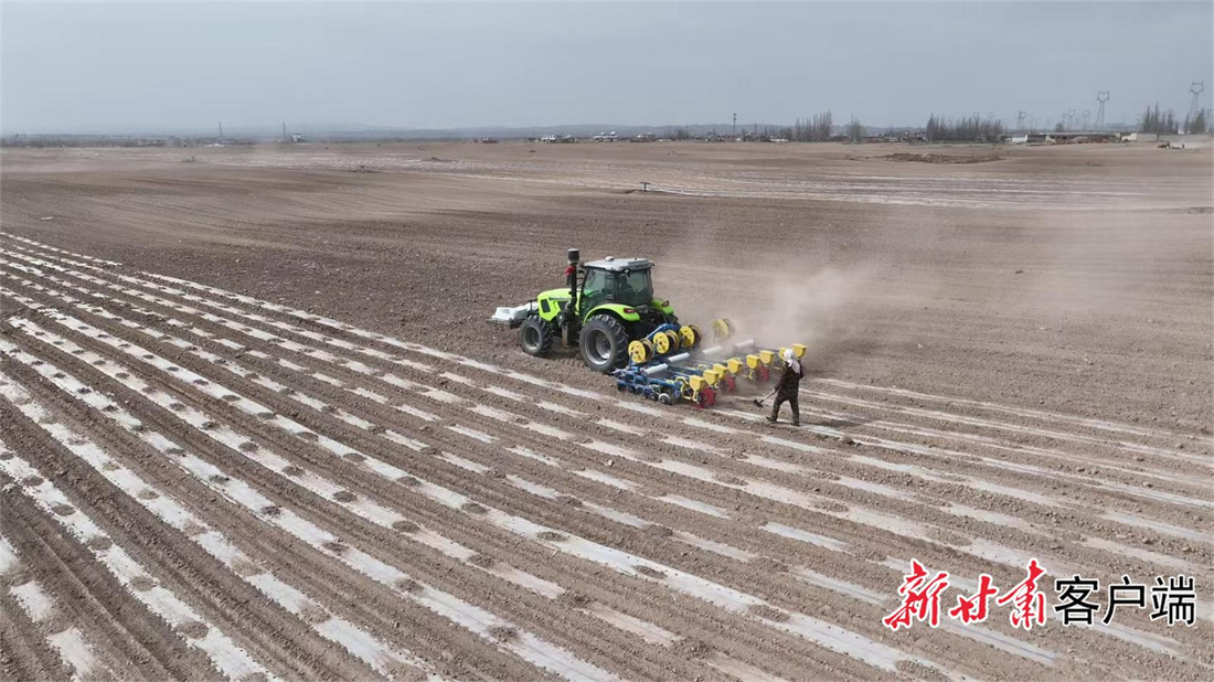 ▲大型耕種機(jī)正在高標(biāo)準(zhǔn)農(nóng)田里來(lái)回穿梭,鋪膜、播種、鋪設(shè)滴灌帶一氣呵成。本文圖片由新甘肅·甘肅日?qǐng)?bào)通訊員 牛亮 攝