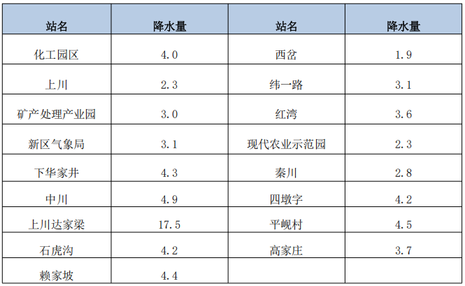 表1:蘭州新區(qū)6月23日14時(shí)至24日08時(shí)降水量(單位:毫米)