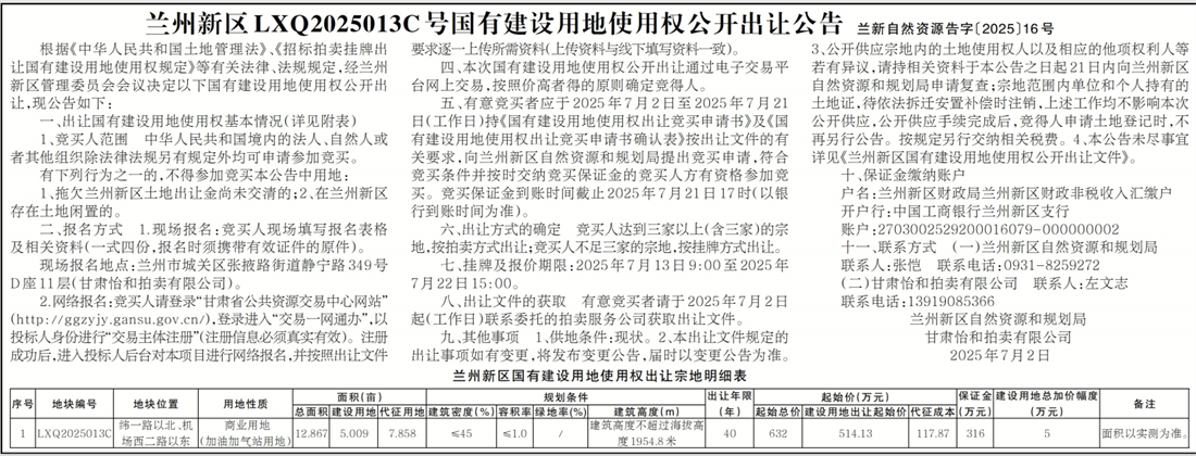 來源: 蘭州新區(qū)自然資源和規(guī)劃局