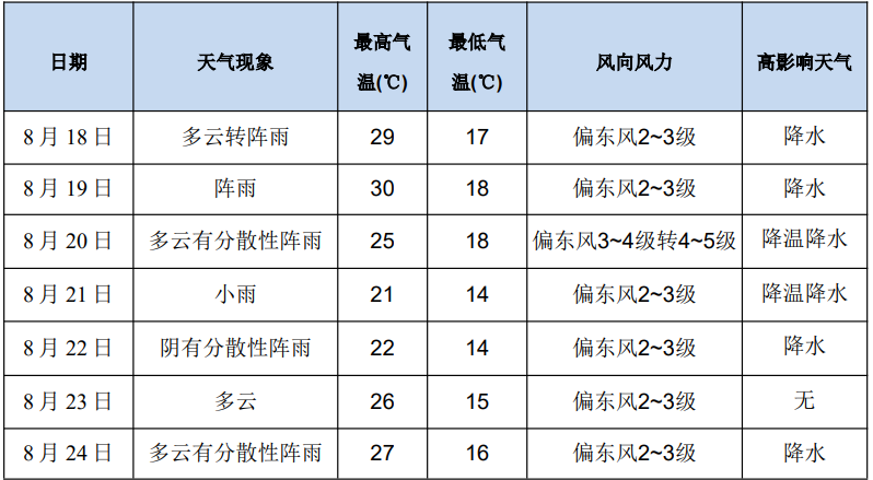 一、未來(lái)一周(8月18日-8月24日)天氣趨勢(shì)預(yù)報(bào)