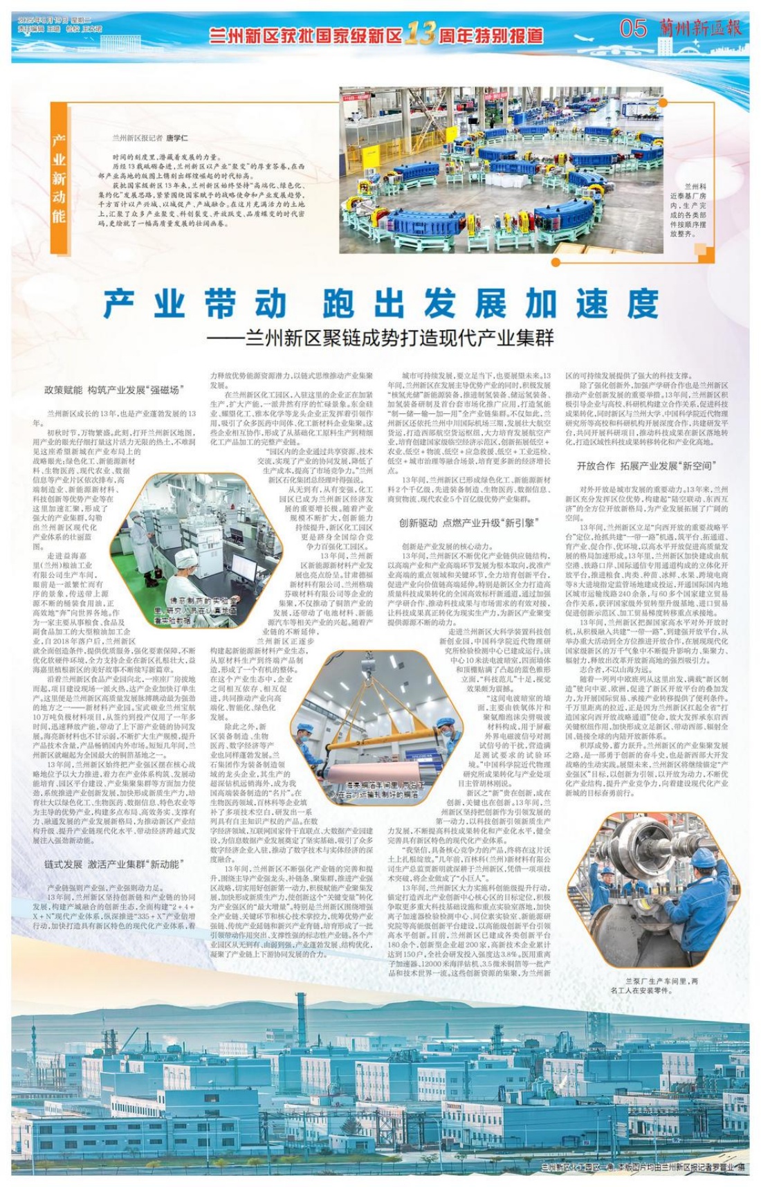 13年間,蘭州新區(qū)不斷優(yōu)化產(chǎn)業(yè)鏈供應(yīng)鏈結(jié)構(gòu),以高端產(chǎn)業(yè)和產(chǎn)業(yè)高端環(huán)節(jié)發(fā)展為根本取向,找準(zhǔn)產(chǎn)業(yè)高端的重點(diǎn)領(lǐng)域和關(guān)鍵環(huán)節(jié),全力培育創(chuàng)新平臺(tái),促進(jìn)產(chǎn)業(yè)向價(jià)值鏈高端延伸。特別是新區(qū)全力打造高質(zhì)量科技成果轉(zhuǎn)化的全國(guó)高效標(biāo)桿新通道,通過(guò)加強(qiáng)產(chǎn)學(xué)研合作、推動(dòng)科技成果與市場(chǎng)需求的有效對(duì)接,讓科技成果真正轉(zhuǎn)化為現(xiàn)實(shí)生產(chǎn)力,為新區(qū)產(chǎn)業(yè)聚變提供源源不斷的動(dòng)力。