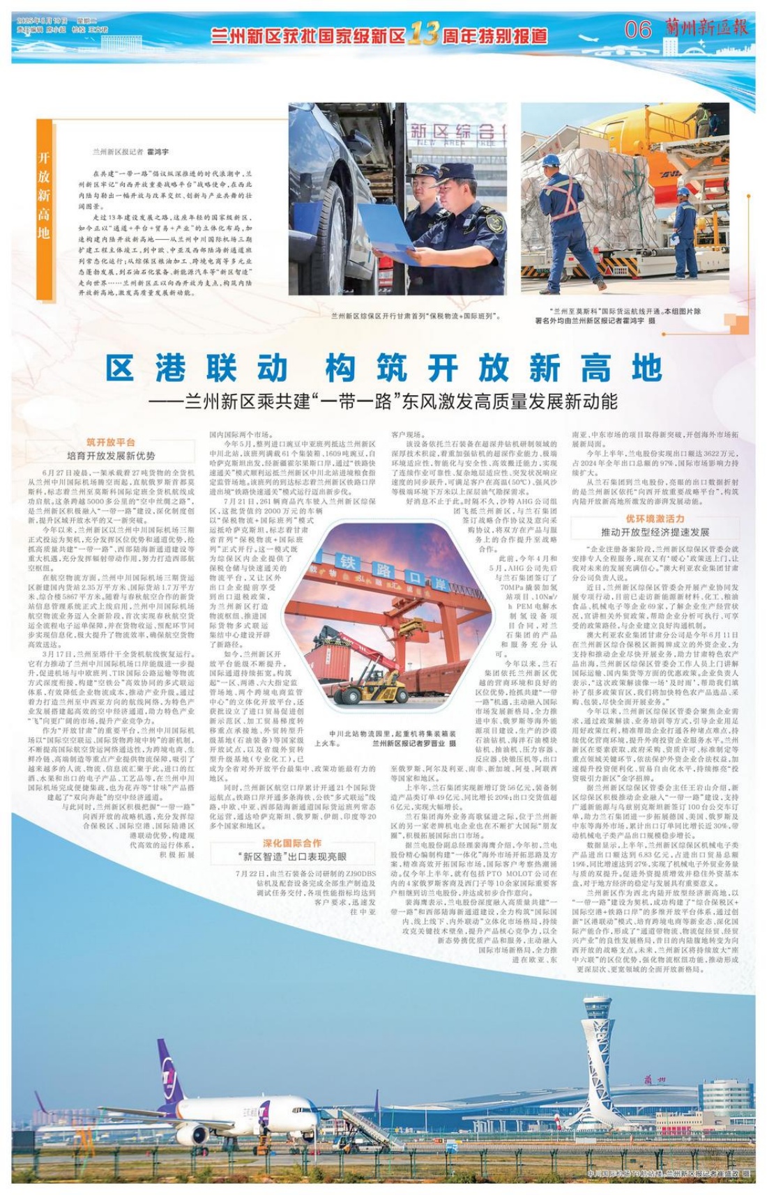 走過13年建設(shè)發(fā)展之路,這座年輕的國家級新區(qū),如今正以“通道+平臺+貿(mào)易+產(chǎn)業(yè)”的立體化布局,加速構(gòu)建內(nèi)陸開放新高地——從蘭州中川國際機(jī)場三期擴(kuò)建工程主體竣工,到中歐、中亞及西部陸海新通道班列常態(tài)化運(yùn)行;從綜保區(qū)糧油加工、跨境電商等多元業(yè)態(tài)蓬勃發(fā)展,到石油石化裝備、新能源汽車等“新區(qū)智造”走向世界……蘭州新區(qū)正以向西開放為支點(diǎn),構(gòu)筑內(nèi)陸開放新高地,激發(fā)高質(zhì)量發(fā)展新動能。