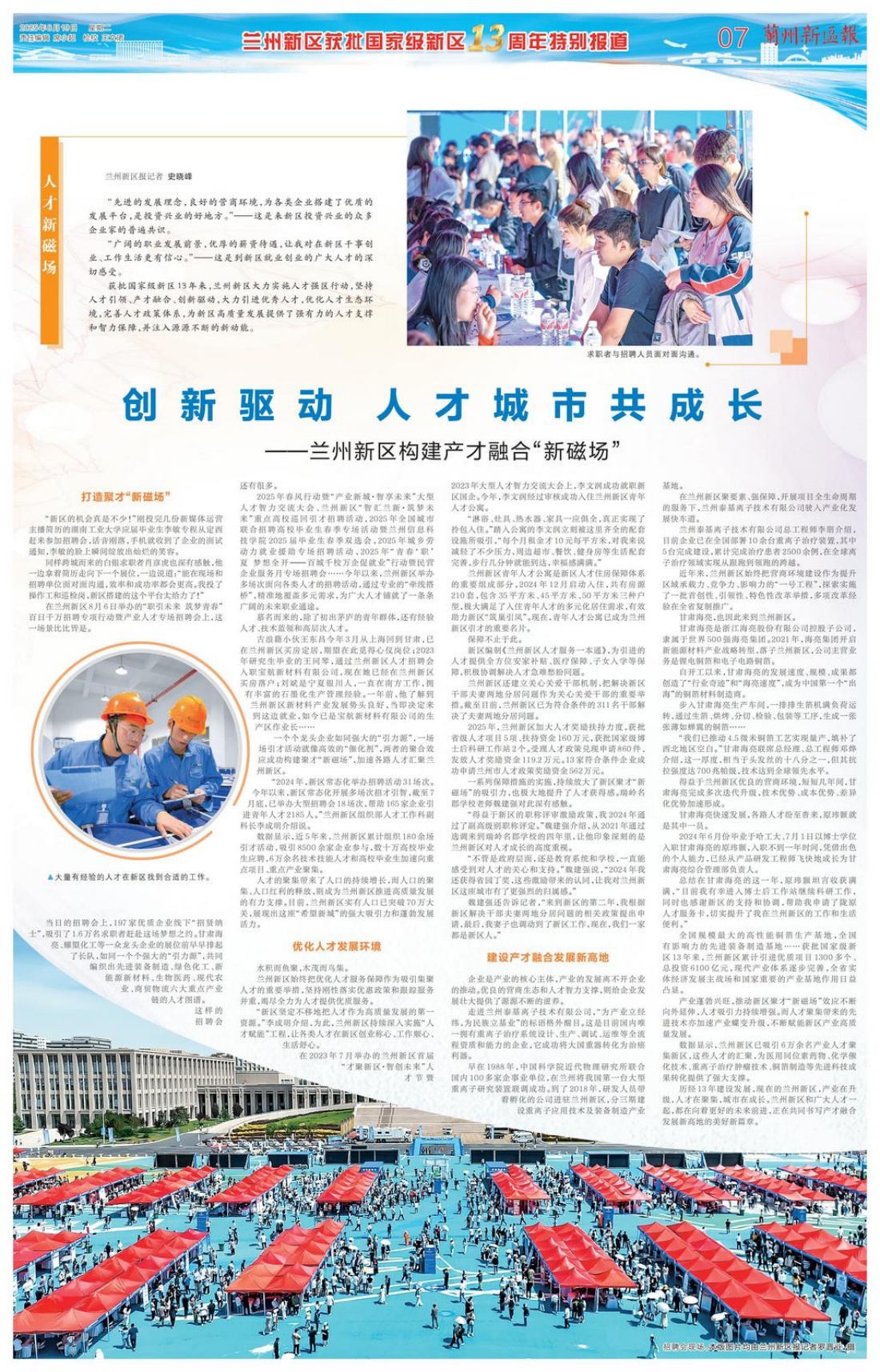 獲批國家級新區(qū)13年來,蘭州新區(qū)大力實施人才強區(qū)行動,堅持人才引領(lǐng)、產(chǎn)才融合、創(chuàng)新驅(qū)動,大力引進優(yōu)秀人才,優(yōu)化人才生態(tài)環(huán)境,完善人才政策體系,為新區(qū)高質(zhì)量發(fā)展提供了強有力的人才支撐和智力保障,并注入源源不斷的新動能。