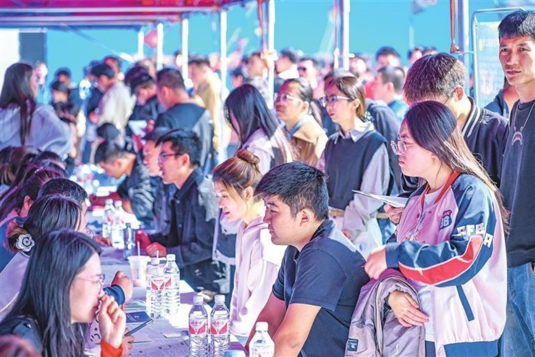 在蘭州新區(qū)8月6日舉辦的“職引未來 筑夢青春”百日千萬招聘專項行動暨產(chǎn)業(yè)人才專場招聘會上,這一場景比比皆是。